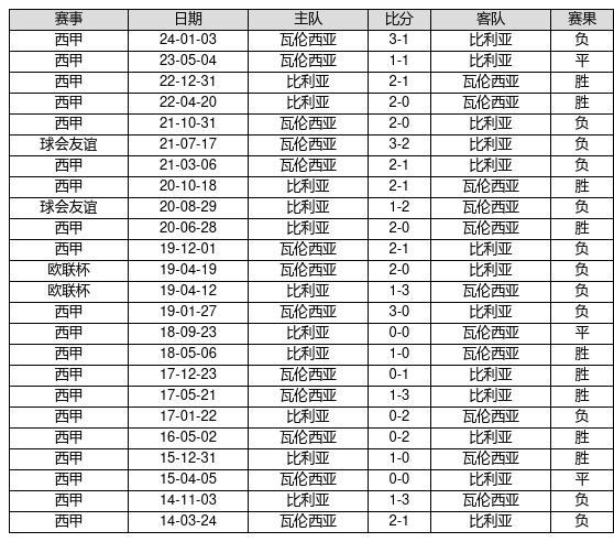 比利亚 VS 瓦伦西亚两队近10年的交战次数为24场,比利亚9胜3平12负,赢球概率为37.5%,平局概率为12.5%,输球概率为50%。