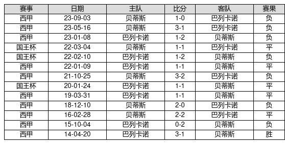 巴列卡诺 VS 贝蒂斯两队近10年的交战次数为13场,巴列卡诺1胜5平7负,赢球概率为7.7%,平局概率为38.5%,输球概率为53.8%。