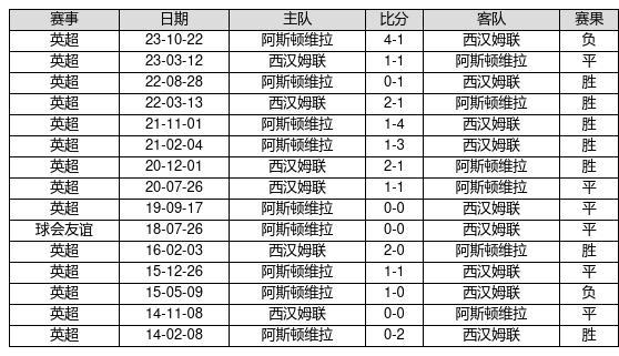 西汉姆联 VS 阿斯顿维拉两队近10年的交战次数为15场,西汉姆联7胜6平2负,赢球概率为46.7%,平局概率为40%,输球概率为13.3%。