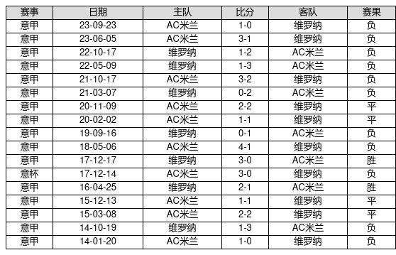 维罗纳 VS AC米兰两队近10年的交战次数为17场,维罗纳2胜4平11负,赢球概率为11.8%,平局概率为23.5%,输球概率为64.7%。