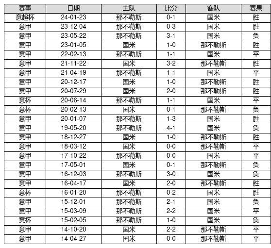 国米 VS 那不勒斯两队近10年的交战次数为25场,国米10胜8平7负,赢球概率为40%,平局概率为32%,输球概率为28%。