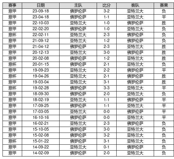 亚特兰大 VS 佛罗伦萨两队近10年的交战次数为25场,亚特兰大6胜7平12负,赢球概率为24%,平局概率为28%,输球概率为48%。