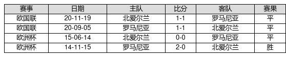 罗马尼亚 VS 北爱尔兰两队近10年的交战次数为4场,罗马尼亚1胜3平0负,赢球概率为25%,平局概率为75%,输球概率为0%。
