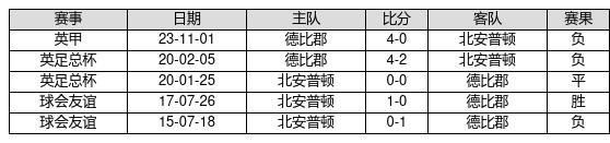 北安普顿 VS 德比郡两队近10年的交战次数为5场,北安普顿1胜1平3负,赢球概率为20%,平局概率为20%,输球概率为60%。