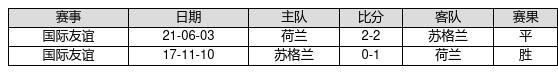 荷兰 VS 苏格兰两队近10年的交战次数为2场,荷兰1胜1平0负,赢球概率为50%,平局概率为50%,输球概率为0%。