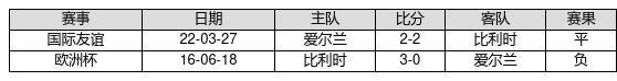 爱尔兰 VS 比利时两队近10年的交战次数为2场,爱尔兰0胜1平1负,赢球概率为0%,平局概率为50%,输球概率为50%。