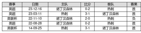 热刺 VS 诺丁汉森林两队近10年的交战次数为5场,热刺4胜0平1负,赢球概率为80%,平局概率为0%,输球概率为20%。