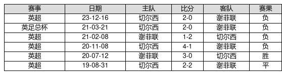 谢菲联 VS 切尔西两队近10年的交战次数为6场,谢菲联1胜1平4负,赢球概率为16.7%,平局概率为16.7%,输球概率为66.7%。