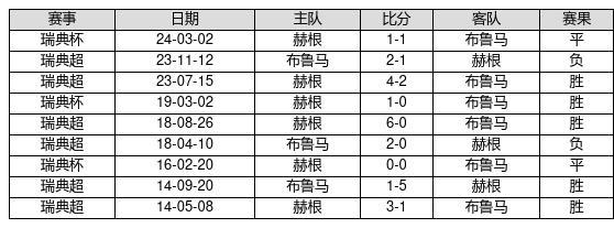 赫根 VS 布鲁马两队近10年的交战次数为9场,赫根5胜2平2负,赢球概率为55.6%,平局概率为22.2%,输球概率为22.2%。