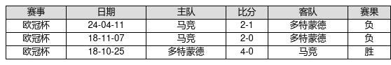 多特蒙德 VS 马竞两队近10年的交战次数为3场,多特蒙德1胜0平2负,赢球概率为33.3%,平局概率为0%,输球概率为66.7%。