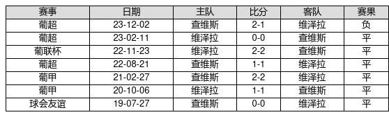 维泽拉 VS 查维斯两队近10年的交战次数为7场,维泽拉0胜6平1负,赢球概率为0%,平局概率为85.7%,输球概率为14.3%。