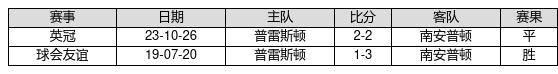 南安普顿 VS 普雷斯顿两队近10年的交战次数为2场,南安普顿1胜1平0负,赢球概率为50%,平局概率为50%,输球概率为0%。