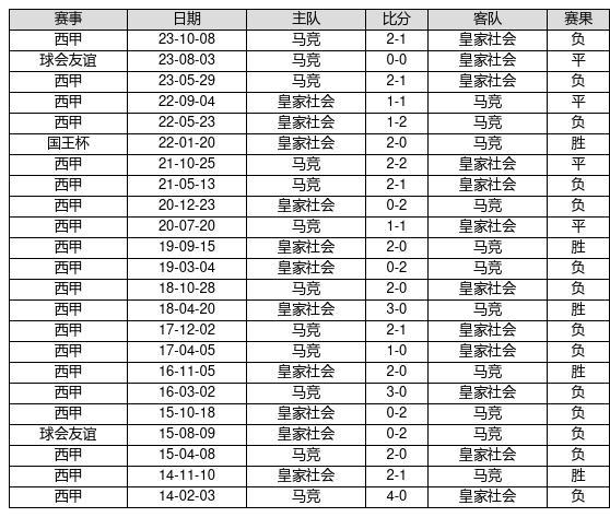 皇家社会 VS 马竞两队近10年的交战次数为23场,皇家社会5胜4平14负,赢球概率为21.7%,平局概率为17.4%,输球概率为60.9%。