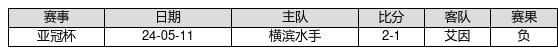 艾因 VS 横滨水手两队近10年的交战次数为1场,艾因0胜0平1负,赢球概率为0%,平局概率为0%,输球概率为100%。
