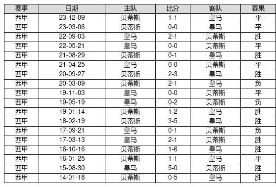 皇马 VS 贝蒂斯两队近10年的交战次数为18场,皇马9胜6平3负,赢球概率为50%,平局概率为33.3%,输球概率为16.7%。