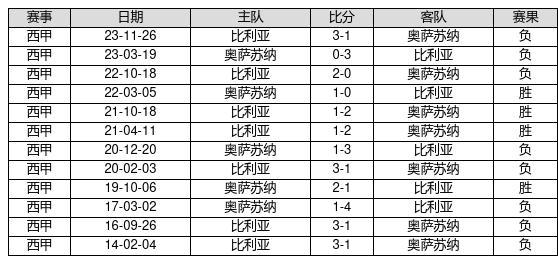 奥萨苏纳 VS 比利亚两队近10年的交战次数为12场,奥萨苏纳4胜0平8负,赢球概率为33.3%,平局概率为0%,输球概率为66.7%。