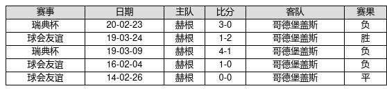 哥德堡盖斯 VS 赫根两队近10年的交战次数为5场,哥德堡盖斯1胜1平3负,赢球概率为20%,平局概率为20%,输球概率为60%。