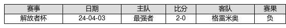 格雷米奥 VS 最强者两队近10年的交战次数为1场,格雷米奥0胜0平1负,赢球概率为0%,平局概率为0%,输球概率为100%。