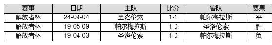 帕尔梅拉斯 VS 圣洛伦索两队近10年的交战次数为3场,帕尔梅拉斯1胜1平1负,赢球概率为33.3%,平局概率为33.3%,输球概率为33.3%。