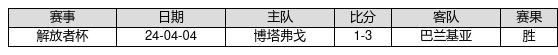 巴兰基亚 VS 博塔弗戈两队近10年的交战次数为1场,巴兰基亚1胜0平0负,赢球概率为100%,平局概率为0%,输球概率为0%。