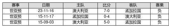 孟加拉国 VS 澳大利亚两队近10年的交战次数为3场,孟加拉国0胜0平3负,赢球概率为0.0%,平局概率为0.0%,输球概率为100.0%。