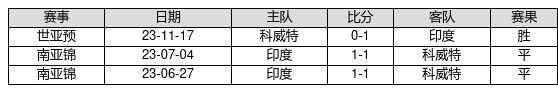 印度 VS 科威特两队近10年的交战次数为3场,印度1胜2平0负,赢球概率为33.3%,平局概率为66.7%,输球概率为0.0%。
