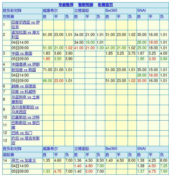 胜负彩24090期欧洲四大机构最新行情