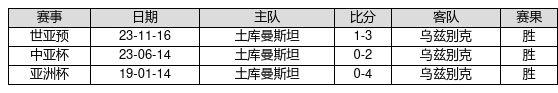 乌兹别克 VS 土库曼斯坦两队近10年的交战次数为3场,乌兹别克3胜0平0负,赢球概率为100.0%,平局概率为0.0%,输球概率为0.0%。