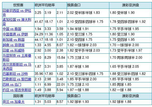 胜负彩24090期欧亚比例对照:中国盘口存差异