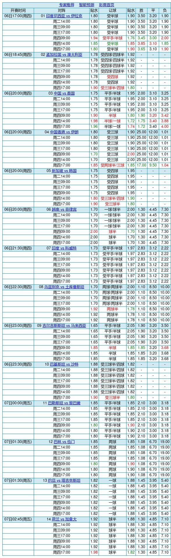 胜负彩24090期澳盘最新信息(17:00)