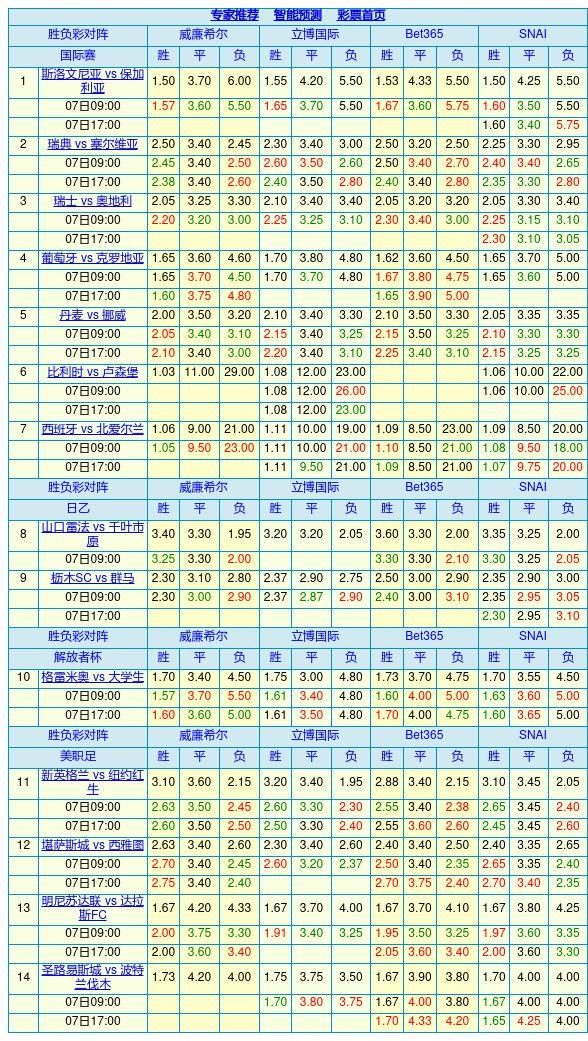 胜负彩24091期欧洲四大机构最新行情(17:00)