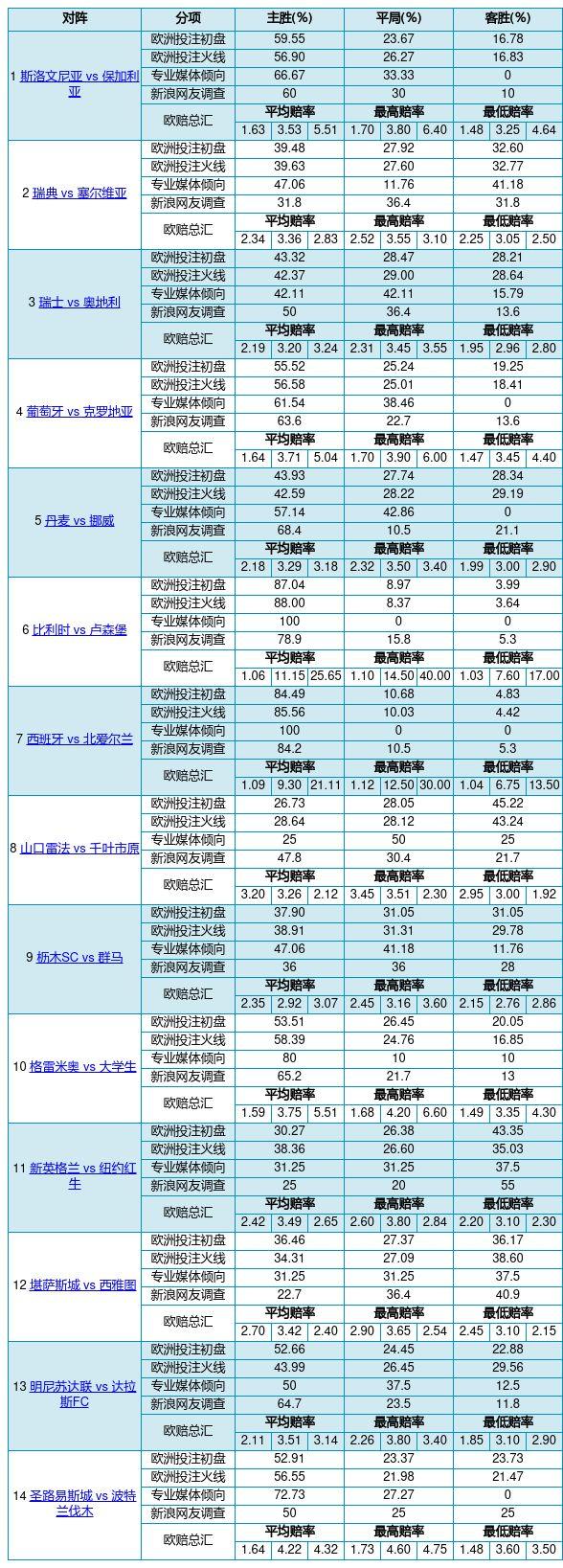 胜负彩24091期欧洲行情比例&网友调查及欧赔总汇