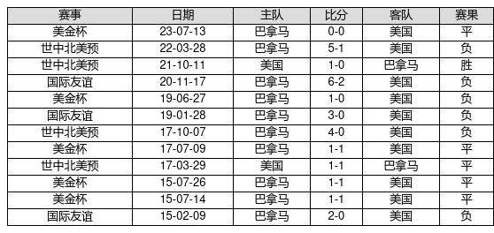 美国 VS 巴拿马两队近10年的交战次数为12场,美国1胜5平6负,赢球概率为8.3%,平局概率为41.7%,输球概率为50%。