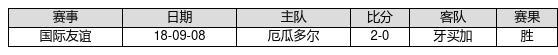 厄瓜多尔 VS 牙买加两队近10年的交战次数为1场,厄瓜多尔1胜0平0负,赢球概率为100%,平局概率为0%,输球概率为0%。