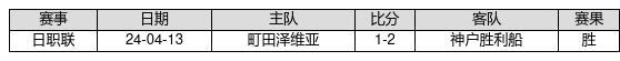神户胜利船 VS 町田泽维亚两队近10年的交战次数为1场,神户胜利船1胜0平0负,赢球概率为100%,平局概率为0%,输球概率为0%。