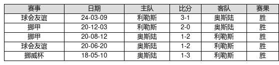 利勒斯 VS 奥斯陆两队近10年的交战次数为5场,利勒斯5胜0平0负,赢球概率为100%,平局概率为0%,输球概率为0%。