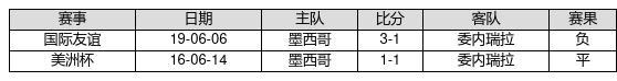 委内瑞拉 VS 墨西哥两队近10年的交战次数为2场,委内瑞拉0胜1平1负,赢球概率为0%,平局概率为50%,输球概率为50%。