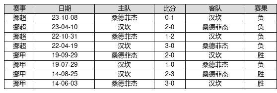 桑德菲杰 VS 汉坎两队近10年的交战次数为8场,桑德菲杰3胜0平5负,赢球概率为37.5%,平局概率为0%,输球概率为62.5%。