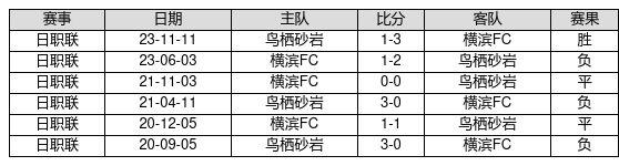 横滨FC VS 鸟栖砂岩两队近10年的交战次数为6场,横滨FC1胜2平3负,赢球概率为16.7%,平局概率为33.3%,输球概率为50.0%。