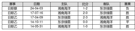 湘南海洋 VS 东京绿茵两队近10年的交战次数为5场,湘南海洋3胜1平1负,赢球概率为60.0%,平局概率为20.0%,输球概率为20.0%。