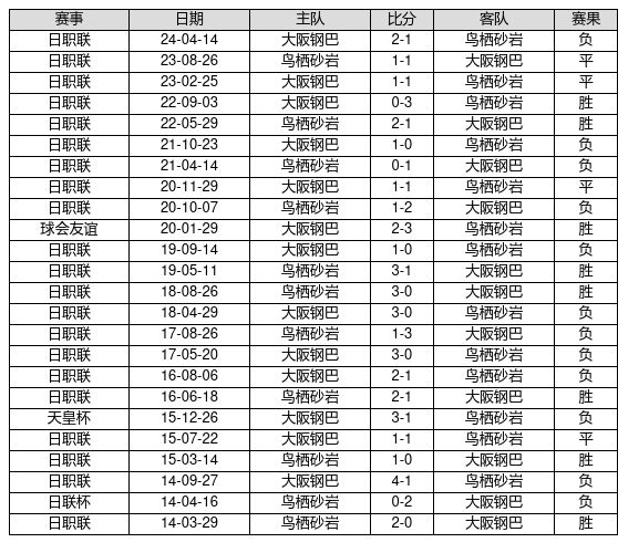 鸟栖砂岩 VS 大阪钢巴两队近10年的交战次数为24场,鸟栖砂岩8胜4平12负,赢球概率为33.3%,平局概率为16.7%,输球概率为50.0%。