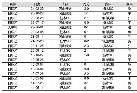 枥木SC VS 冈山绿雉两队近10年的交战次数为18场,枥木SC5胜5平8负,赢球概率为27.8%,平局概率为27.8%,输球概率为44.4%。