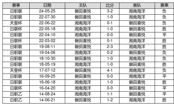 湘南海洋 VS 磐田喜悦两队近10年的交战次数为16场,湘南海洋6胜4平6负,赢球概率为37.5%,平局概率为25.0%,输球概率为37.5%。