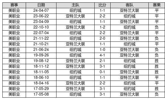 亚特兰大联 VS 纽约城两队近10年的交战次数为16场,亚特兰大联4胜7平5负,赢球概率为25.0%,平局概率为43.8%,输球概率为31.2%。