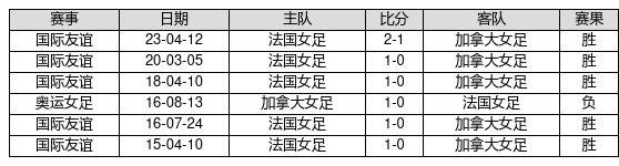 法国女足 VS 加拿大女足两队近10年的交战次数为6场,法国女足5胜0平1负,赢球概率为83.3%,平局概率为0.0%,输球概率为16.7%。