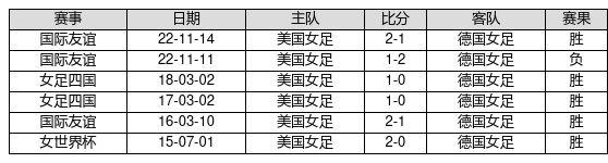 美国女足 VS 德国女足两队近10年的交战次数为6场,美国女足5胜0平1负,赢球概率为83.3%,平局概率为0.0%,输球概率为16.7%。