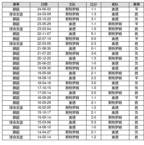 奥德 VS 斯特罗姆两队近10年的交战次数为27场,奥德13胜5平9负,赢球概率为48.1%,平局概率为18.5%,输球概率为33.3%。