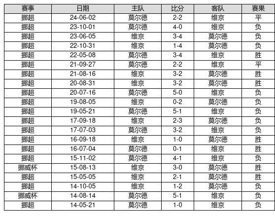 维京 VS 莫尔德两队近10年的交战次数为21场,维京7胜2平12负,赢球概率为33.3%,平局概率为9.5%,输球概率为57.1%。