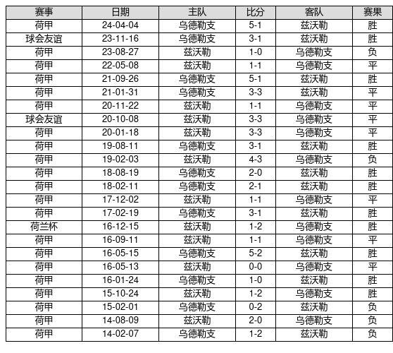 乌德勒支 VS 兹沃勒两队近10年的交战次数为24场,乌德勒支11胜8平5负,赢球概率为45.8%,平局概率为33.3%,输球概率为20.8%。