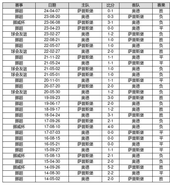 奥德 VS 萨普斯堡两队近10年的交战次数为30场,奥德8胜9平13负,赢球概率为26.7%,平局概率为30.0%,输球概率为43.3%。